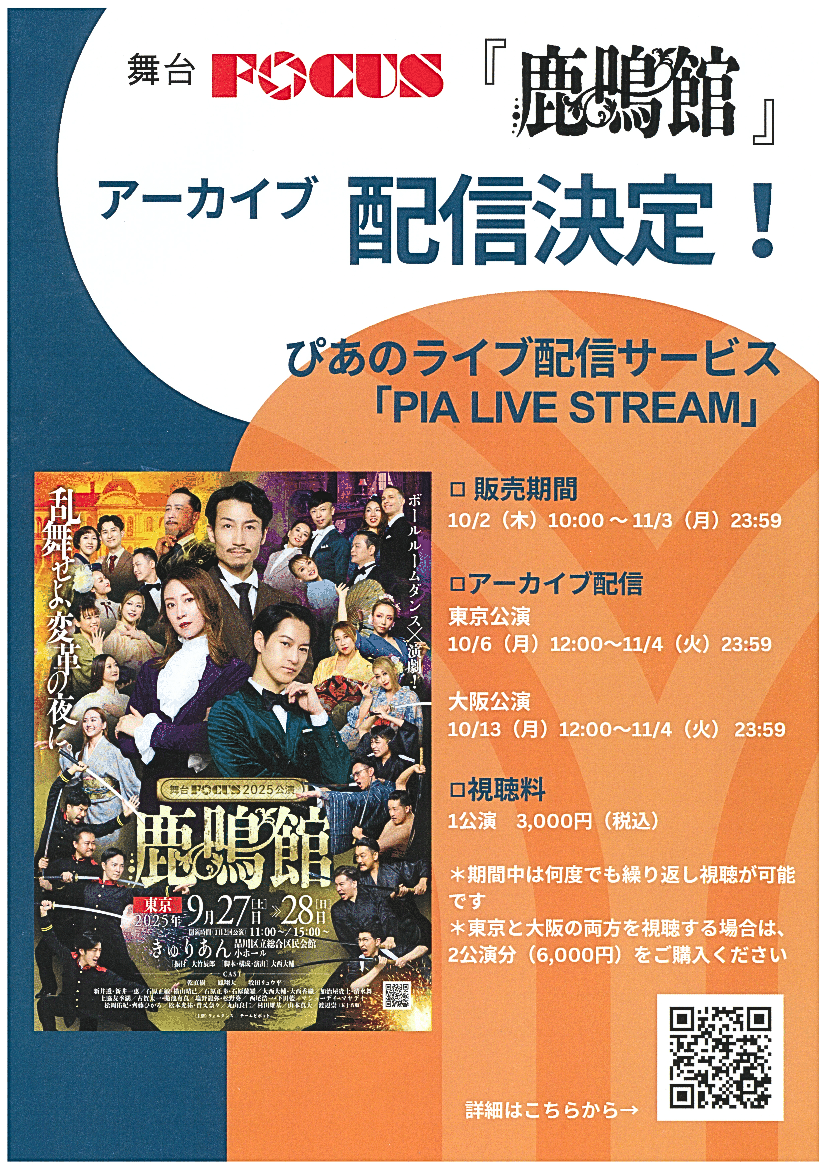 舞台FOCUS「鹿鳴館」のアーカイブ配信販売開始!!