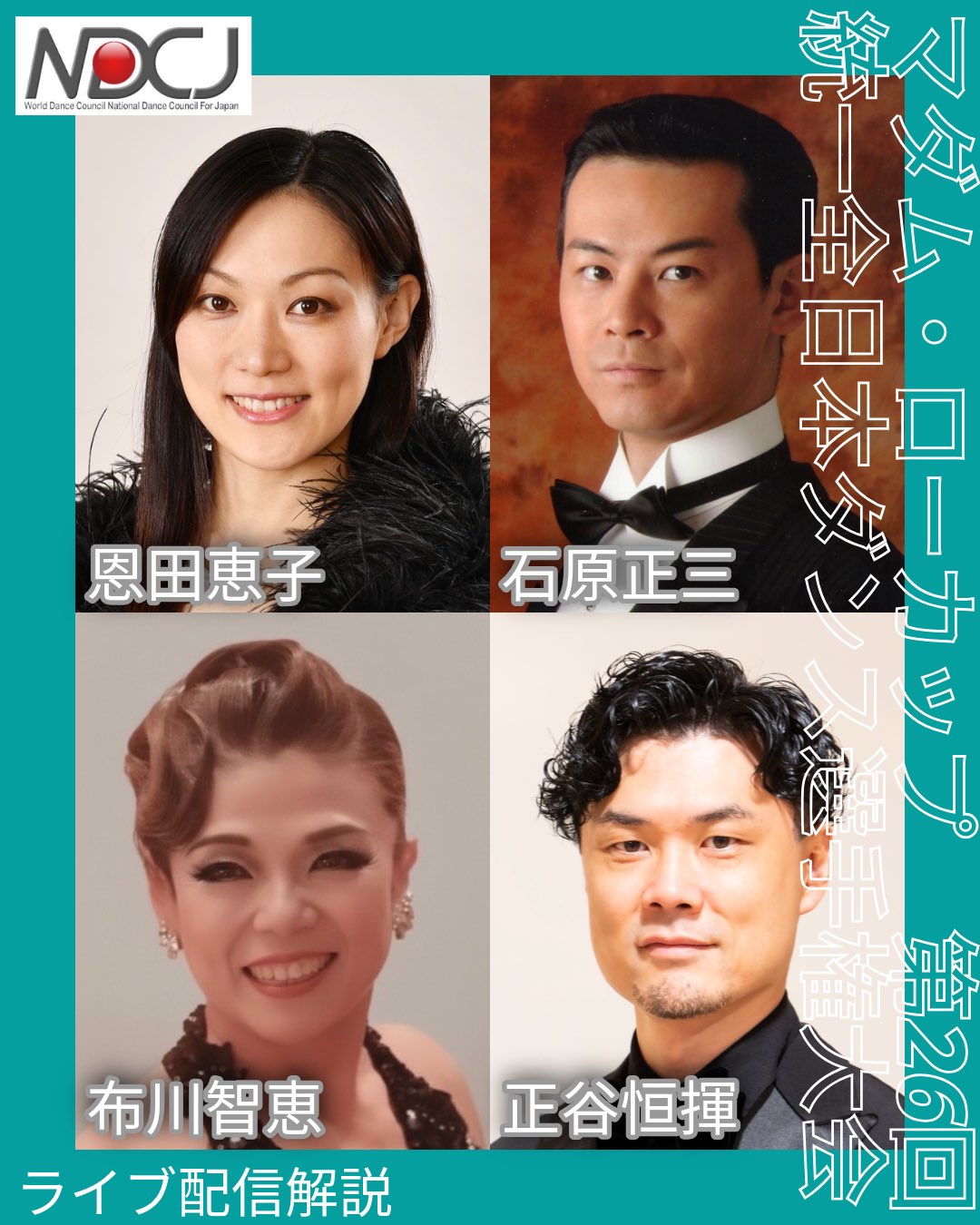 解説はボールルームが石原正三先生と恩田恵子先生。ラテンが正谷恒揮先生と布川智恵先生(準々決勝より出演)。大会の見どころについては本誌79頁参照。