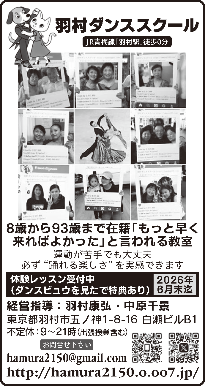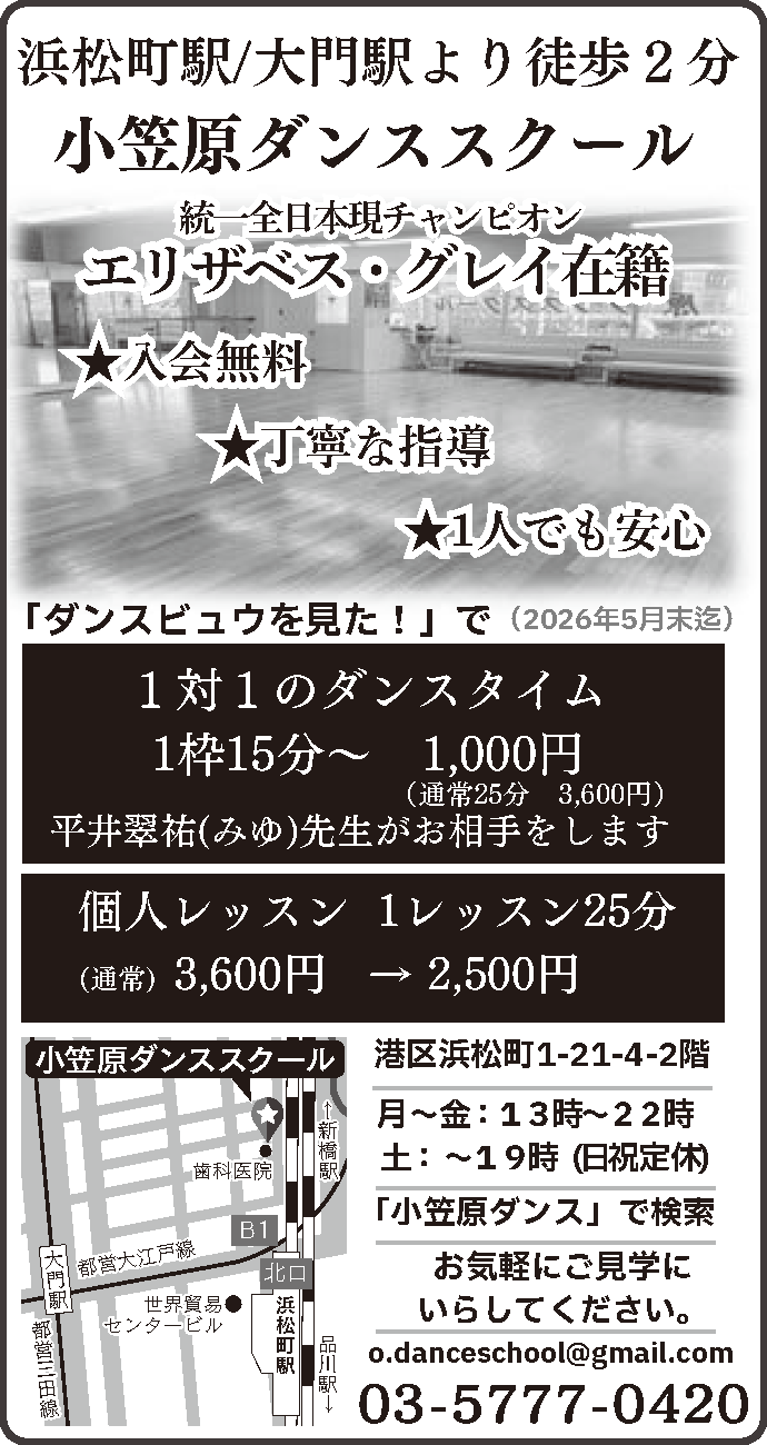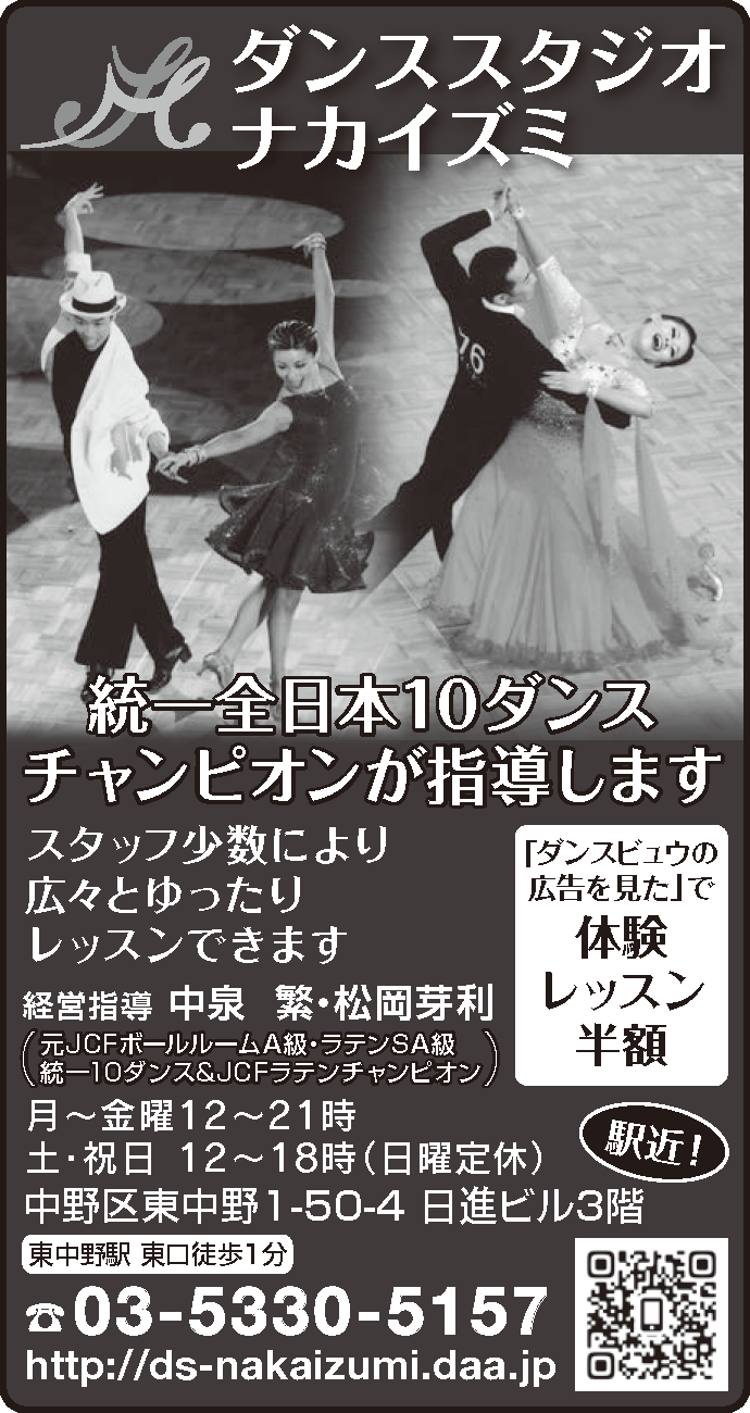 社交ダンス専門誌「月刊ダンスビュウ」がオススメする東京都内の最新社交ダンス教室をご紹介します! お問い合わせのうえ、ぜひご来場ください。