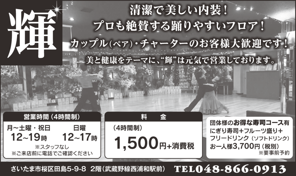 ☎048-941-7860 「ダンスビュウを見た」とお伝えください