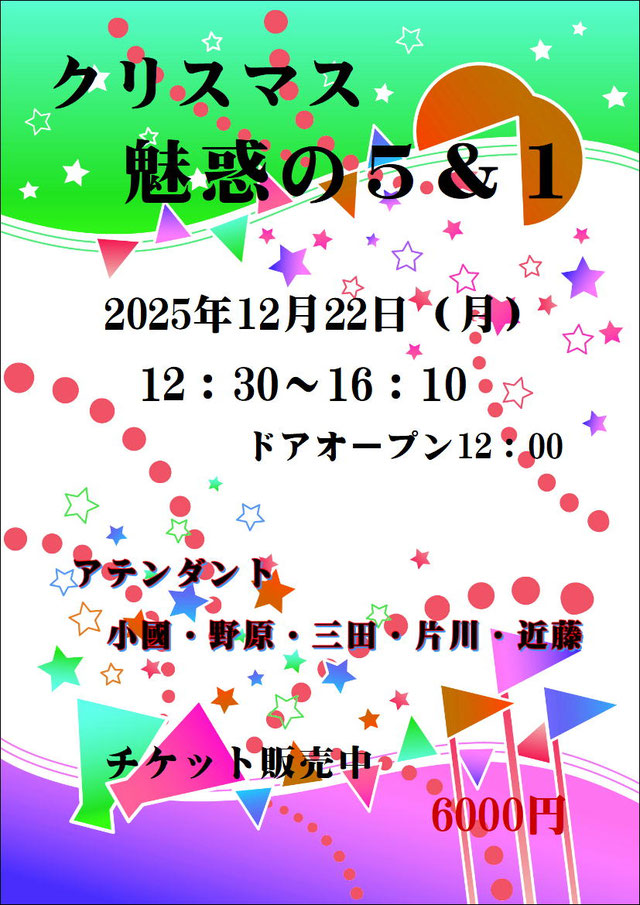 ・豪華お食事&ドリンク付・男性アテンダント数名・ポイントカード有り