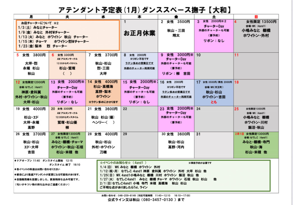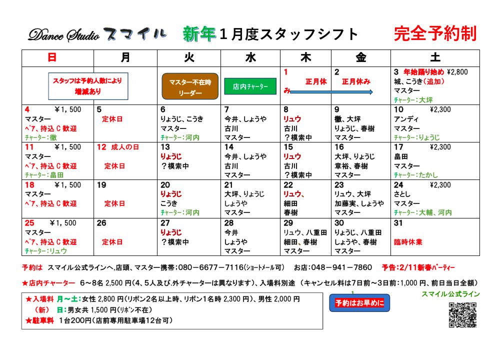 ※最新のスタッフシフトはHPにてご確認ください