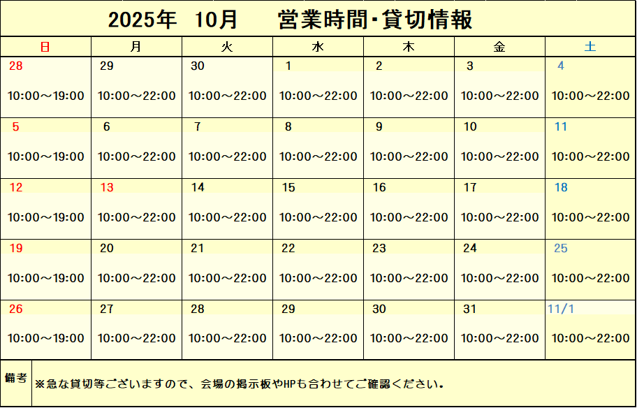 10:00~22:00(無休・年末年始を除く)日曜・祭日も通常営業
