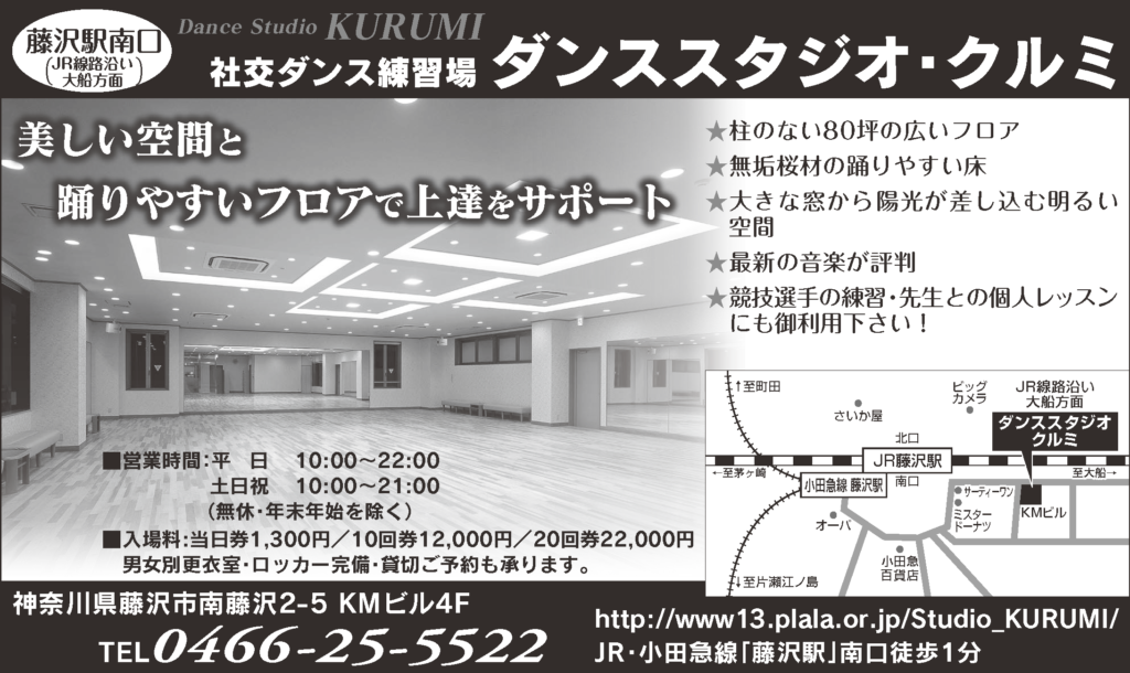 ☎0466-25-5522 「ダンスビュウを見た」とお伝えください